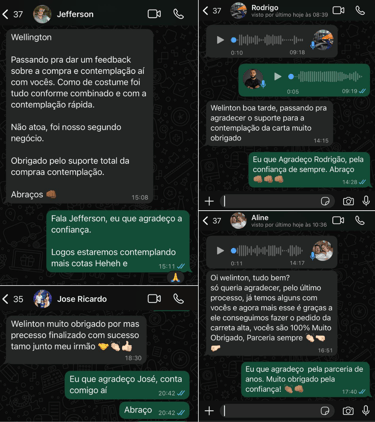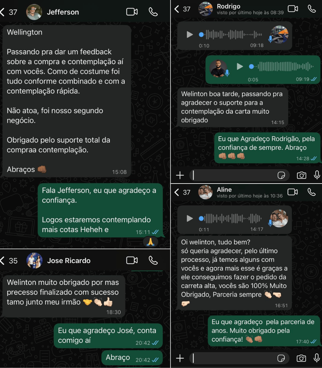 Provas reais, de pessoas reais que confiaram no meu trabalho e conquistaram seu bem por meio do consórcio. Cada mensagem é um lembrete de que, quando existe estratégia, confiança e dedicação, o resultado chega.