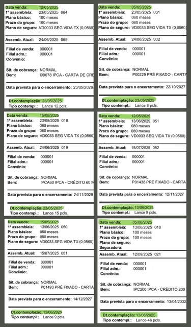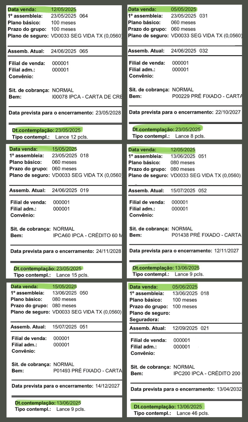 Abaixo você confere alguns exemplos de extratos reais de clientes contemplados já no primeiro mês.